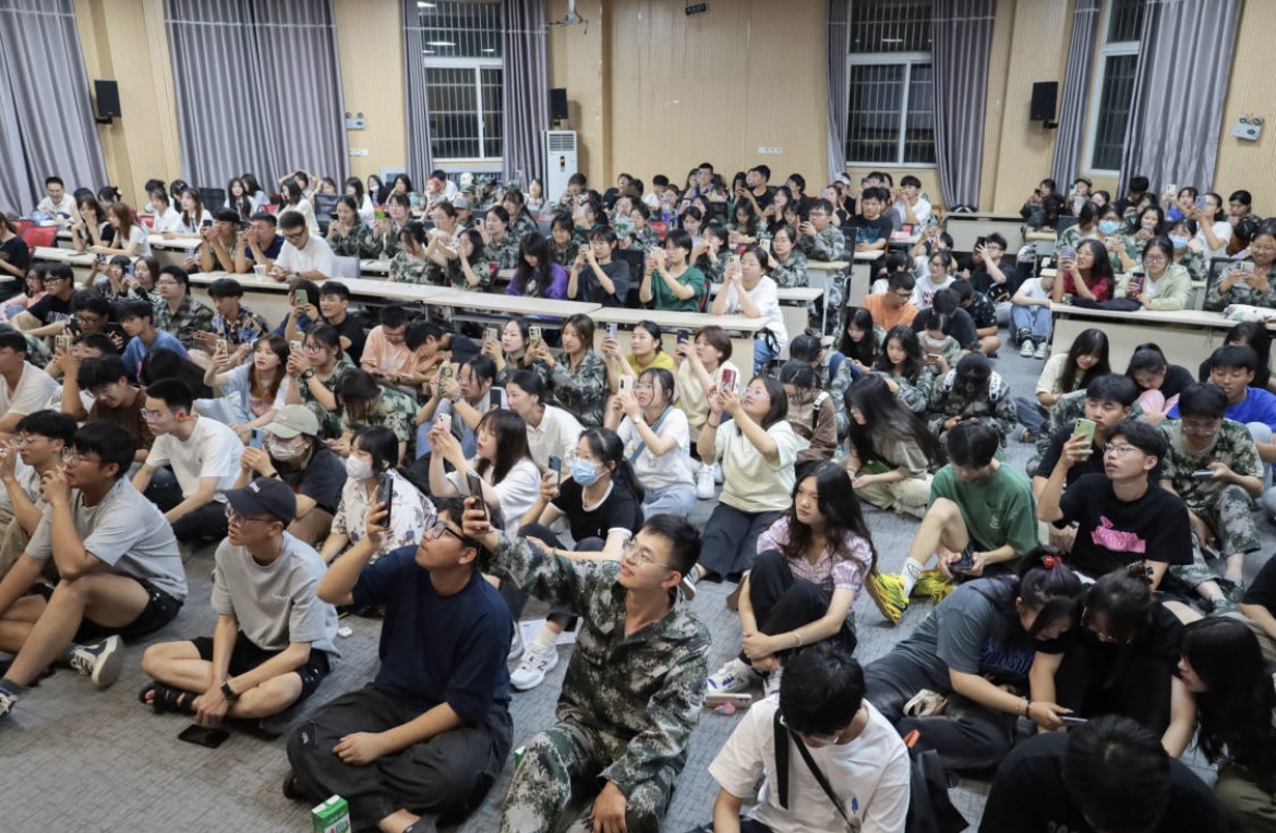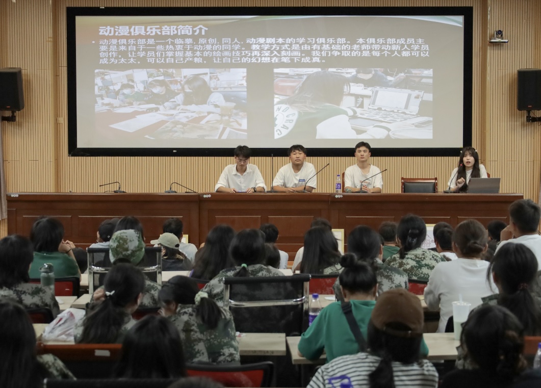 学术报告厅内传来阵阵欢呼声,该院11个俱乐部学生负责人正在进行招新宣讲,近300位2022级新生参加此次宣讲活动。