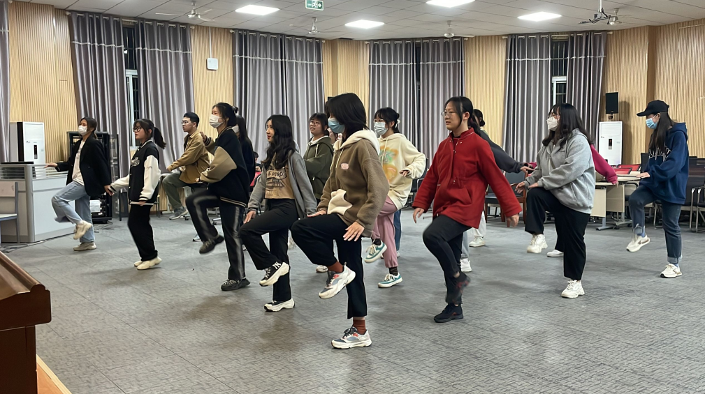 学生会陆续组织了三场健身操学习活动,学生们纷纷来到报告厅跟随大屏幕舞动起来,感受运动的乐趣。