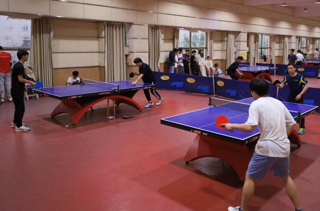 在体育馆三楼乒乓球室举办师生乒乓球联谊赛,20余名师生参与其中。