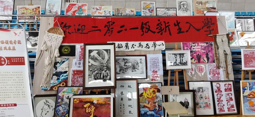 学院团委书记、新生辅导员孟莉介绍,在入学前,学院特意为新生布置了以“奋斗百年路,启航新征程——庆祝中国共产党成立100周年”为主题的美术作品征集暑假作业。开学当天,新生带着作品来报到,每交一幅作品,就会被摆上画架,进行展示。“入学作品展活动能让新生以良好的精神面貌迎接大学生活,同时也是对中国共产党成立100周年的献礼。”孟莉说。