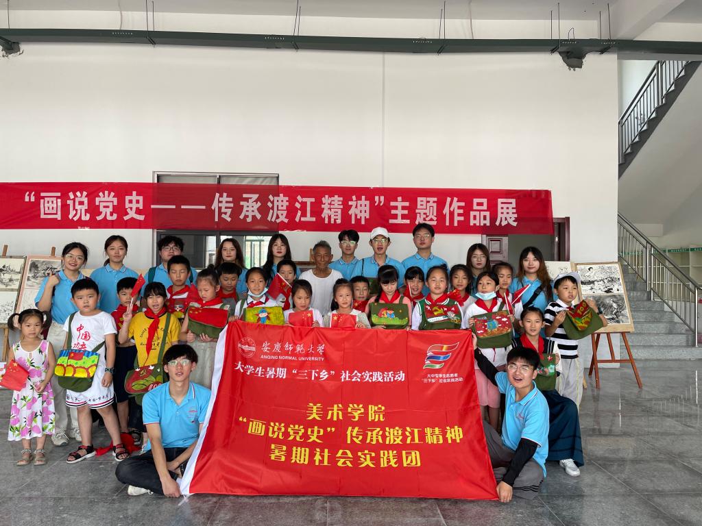 负责同志的陪同下,前往望江县漳湖镇回民村,看望暑期“三下乡”团队“画说党史——传承渡江精神”实践团的成员,并出席主题作品展和专题研讨会。望江县委组织部负责同志,回民村支部书记,安庆丁家小学、漳湖中心小学的30余名小学生及家长等100余人参加了活动。