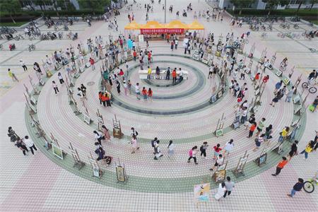 于敬敷广场举办第七届学生优秀作品大型义卖活动,两天卖出作品90余幅,筹集爱心基金一万余元。活动期间,校党委书记许继荣、副校长汪时珍前往义卖现场参观并指导。
