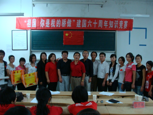 在艺术楼107教室举办“祖国,你是我的骄傲”建国六十周年知识竞赛决赛。学校党校、学生处、团委、保卫处、宣传部等部门领导和魔性论坛