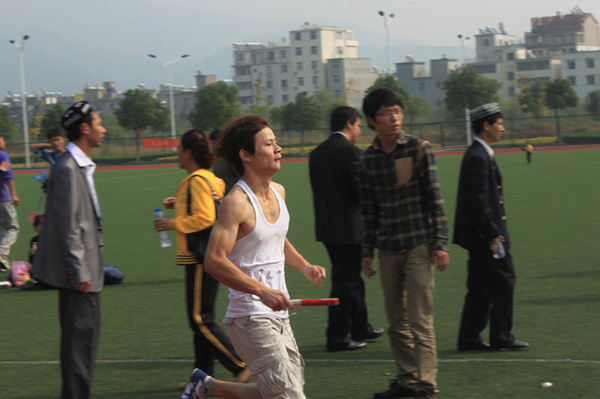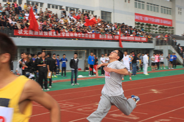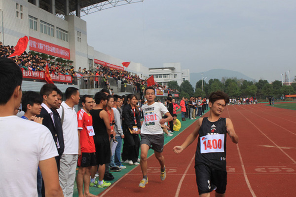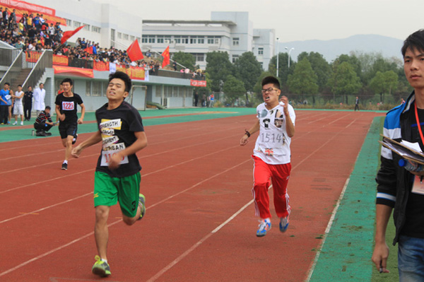11级艺术设计专业李海炫同学正在参加男子甲组800和