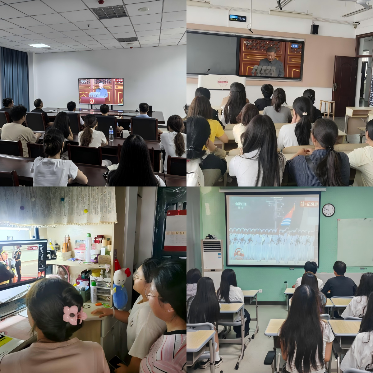 全体领导班子成员、辅导员代表、团学干部代表通过电视直播进行了集中收听观看,学院还组织在校师生、2025级新同学通过不同方式开展了收看活动。