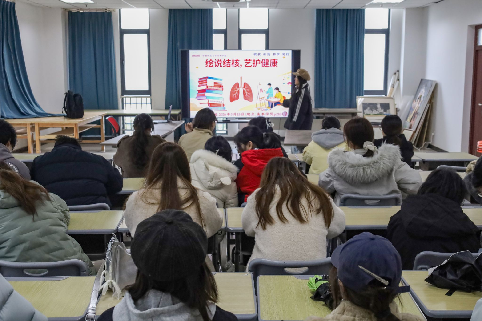 举办“绘说结核,艺护健康”活动。本次活动紧扣“世界防治结核病日”主题,采取知识竞答与作品展示相结合的形式,深度融合专业特色与健康宣教,通过知识竞技与艺术创作双轮驱动,学院近百名学生参与,在院内掀起结核病防治宣传热潮。