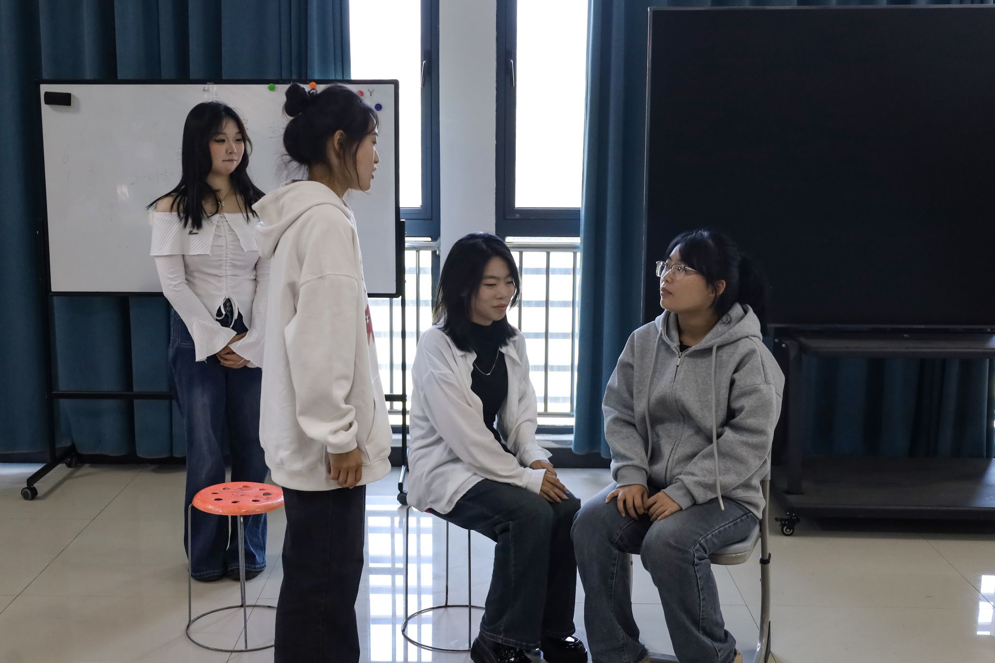 美术学专业2024(2)班的4名学生正在全新演绎经典剧目《雷雨》的场景。10月9日,魔性论坛
