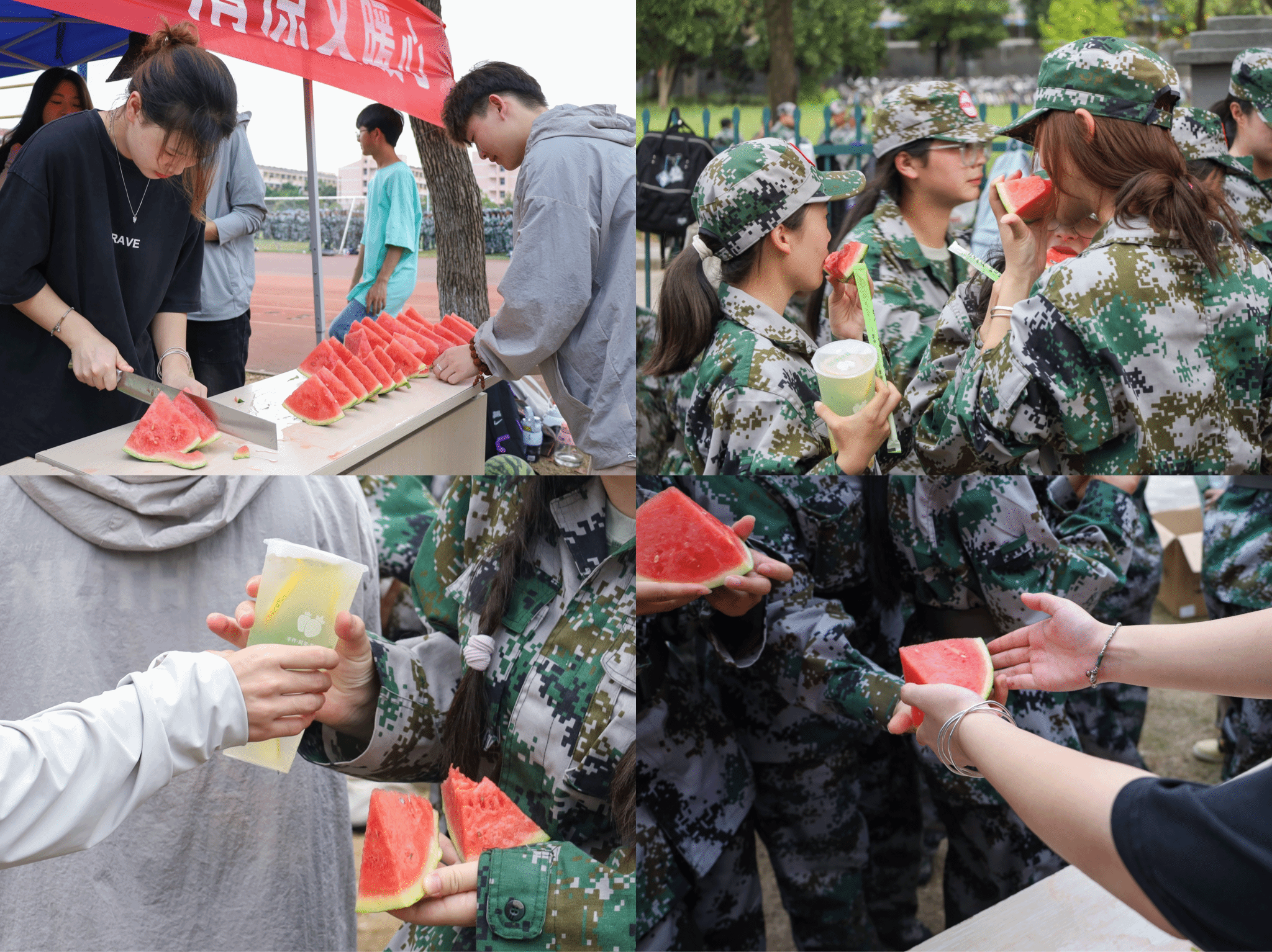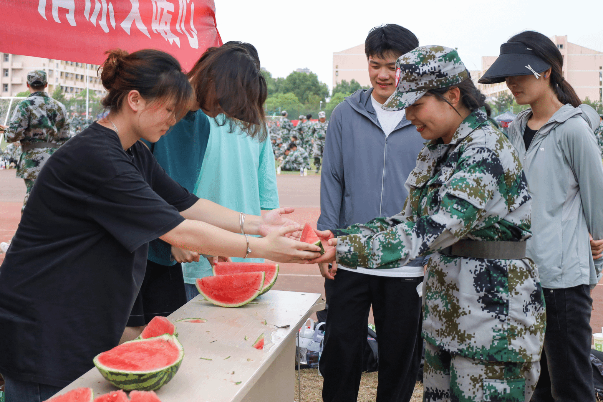 “西瓜是公认的‘解暑神器’,在军训期间为新生们送来西瓜和冷饮能够为他们消暑,缓解军训长时间暴晒的不适感。”单冠瑞表示,希望新生们能够感受到学院的关怀与学姐学长们的热情,将学院当作他们在学校里的“家”,以后每一年都能将这份持续了8年的温暖接续传递。(撰稿:罗佳琦 余胜兰 摄影:张素清 王安琦 审核:金忠良)