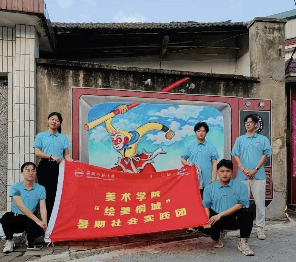 “绘美桐城”暑期社会实践团赴桐城市开展实践调研活动。团队成员以墙绘形式,将游戏机、毽子、弹弓等怀旧元素呈现在墙面上,为居民们“演绎”了40余幅颇具童年记忆的墙绘作品。