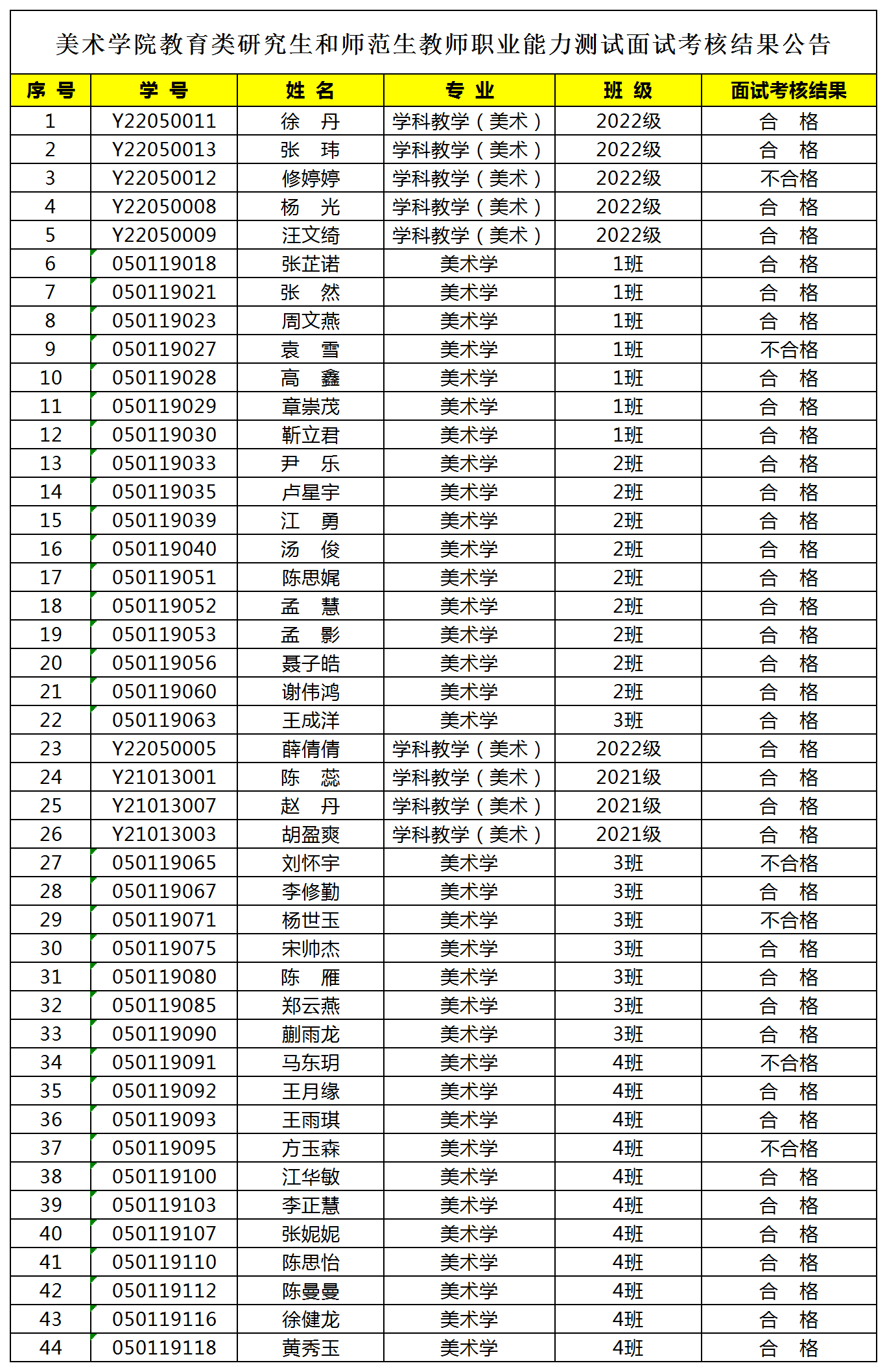 根据《魔性论坛 教育类研究生和师范生教育教学能力考核办法(试行)》和《魔性论坛 2022年下半年教育类研究生和师范生教育教学能力考核公告》,2022年11月19日举行面试,现将面试结果公示,公示时间11月21日至11月23日。