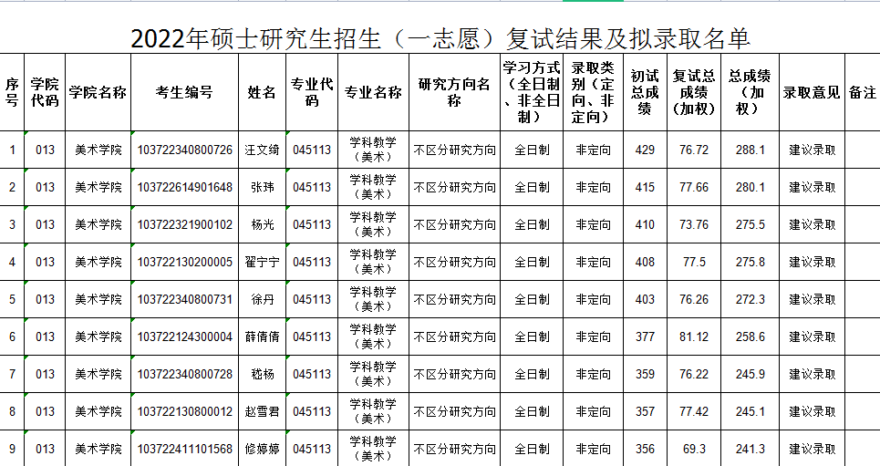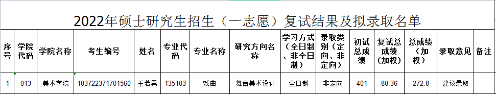 魔性论坛 学科教学(美术)和戏曲专业舞台美术设计方向一志愿拟录取结果如下: