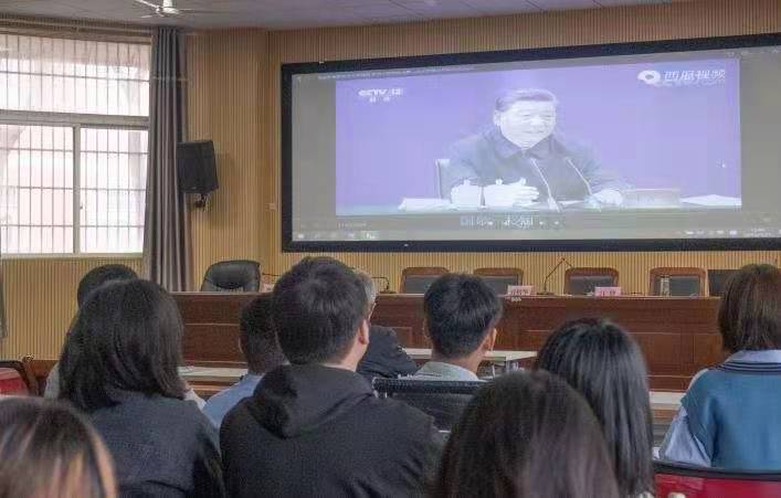 全体师生党员在报告厅集中学习观看了习近平总书记4月19日到清华大学考察的视频新闻,学习了习近平总书记发表的重要讲话。