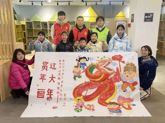 美术学专业2020(3)班的孟天啸,刚到家就报名参与了宿州市砀山县唐寨镇政府的“返家乡”实践活动。在项目启动前三天,他便着手绘制年画并雕刻剪纸。随着墨汁晕染,一幅幅“瑞雪迎春图”“雪中君子图”跃然笔下,在年画展览中受到当地居民普遍称赞,从青年儿童到白发老人,无一不被“圈粉”。此外,他还特意制作了几幅剪纸作为示例,向前来学习的居民展示传统艺术的美学魅力。红纸翻折对称,剪刀雕刻图案,去除多余纸张,在他的帮助下,居民们对剪纸流程熟练起来,一张张团花剪纸、“福”字剪纸、龙年剪纸……图案各异的窗花为社区增添了几分年味。他表示,“在平常的专业课程和课外作业中,我掌握了许多绘画与剪纸的专业技巧,‘返家乡’实践活动给予了这些技巧‘用武之地’。”