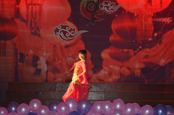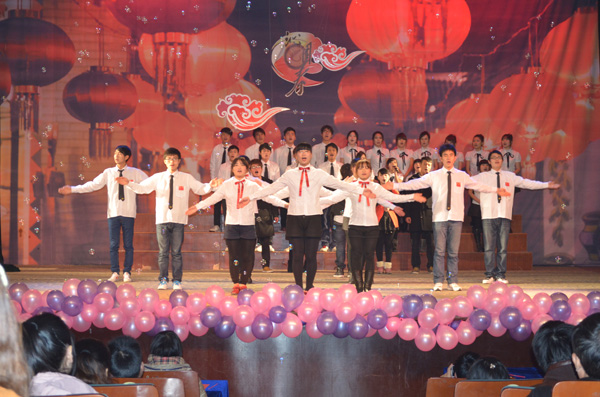 伴随着动感的开场舞《江南style》,晚会正式拉开了序幕。恢弘大气的诗朗诵《沁园春·雪》登上舞台,节目采用了一人朗诵两人进行书法表演的形式,不仅完美的契合了晚会的主题,更是展现了美院学生的专业特色。未见人,先闻声,在一阵叮咚的流水声后,灯光乍现,由夏艳等同学带来的舞蹈《嬉水》带给观众惊艳的视听感受,而cosplay真人秀表演更是引得动漫迷们尖叫连连,现场的掌声和欢笑不断,将晚会推向了第一个高潮。《change》、《肚皮舞》和《机械舞》3支各具特色的舞蹈闪亮登场,演员们高难度的技巧动作,丰富的肢体语言表达,令现场同学们赞叹不已。歌曲《因为爱情》男女深情对唱,更是让观众心中涌起一阵阵暖流。唯美的舞蹈《画中仙》,让现场观众们如临仙境,更是体现出美院学子的多才多艺与青春活力。小品表演《飞机场的那点事》将本次晚会推向了第二个高潮,演员们夸张的肢体动作与丰富的表情,逗得现场观众放声大笑。具有浓郁安庆特色的黄梅戏《到底人间欢乐多》,让大家充分感受黄梅戏的魅力和风采。 “在世界的国,在天地的家,有了强的国,才有富的家……”手语表演《国家》让广大同学们体会到了美院这一大家庭的温暖,歌颂了对祖国的无限热爱,同时也唱出了广大同学对党的十八大所描绘的美好生活蓝图的期盼。晚会结束后,出席晚会的领导、老师和嘉宾上台与全体演职人员合影留念。