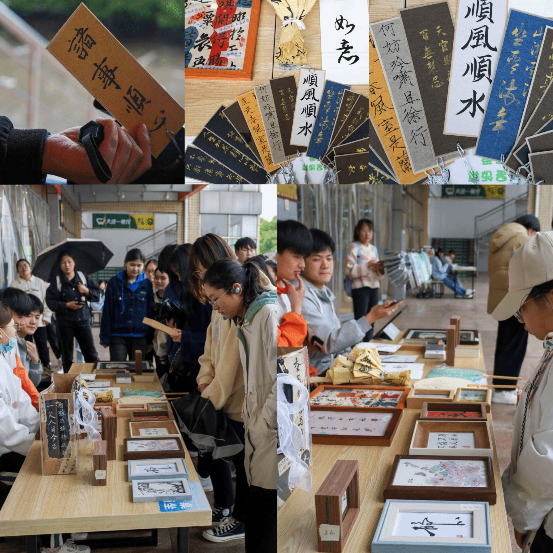 在西苑食堂开展“春暖花开,畅游书海”活动。近30件由学院书法俱乐部成员制作的各类工艺品有序陈列在展台上,吸引近300名学生前来挑选购买。
