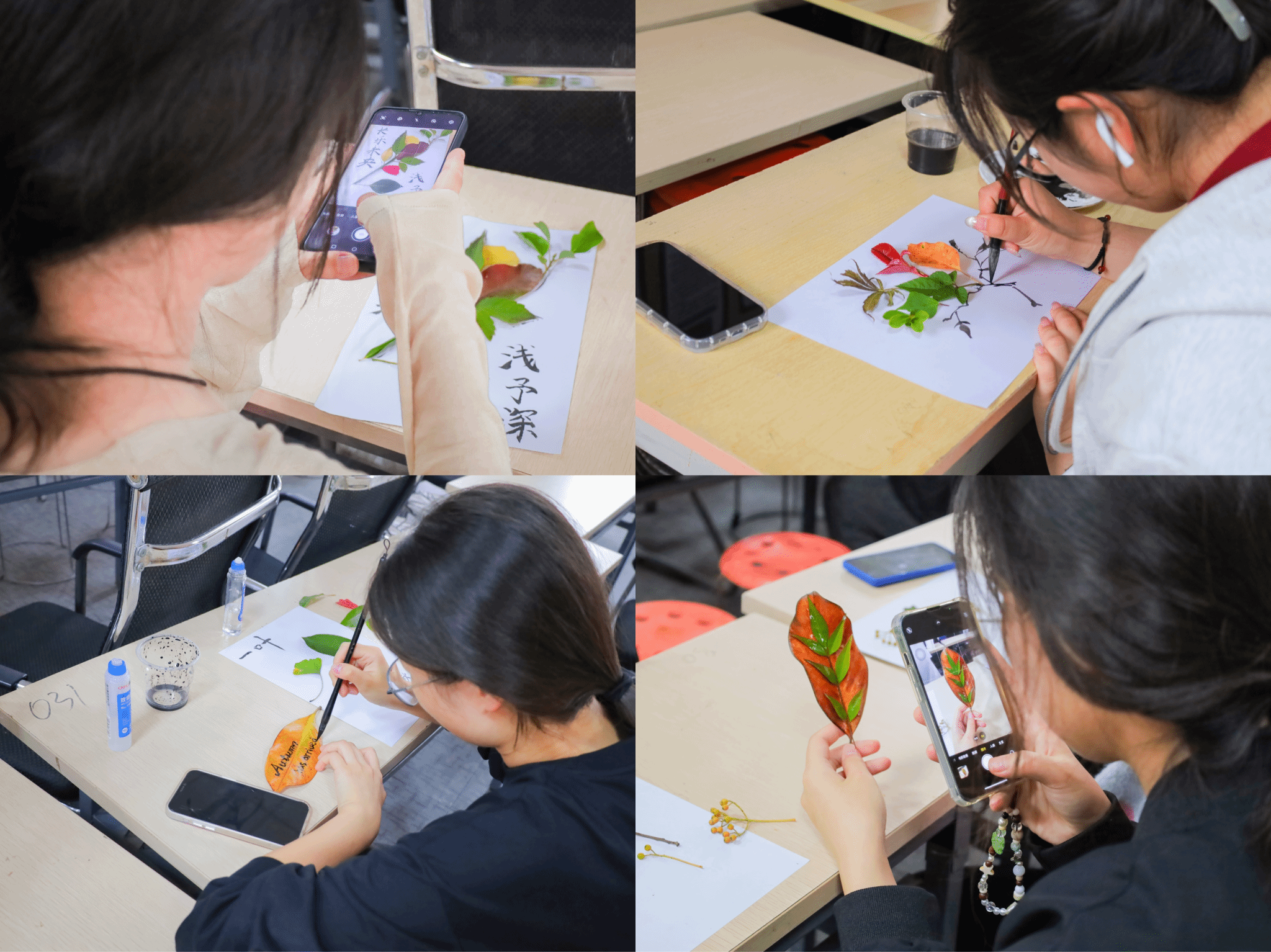 学术报告厅,以落叶为媒,在白纸上“拼”出秋天,在创作中治愈心灵。