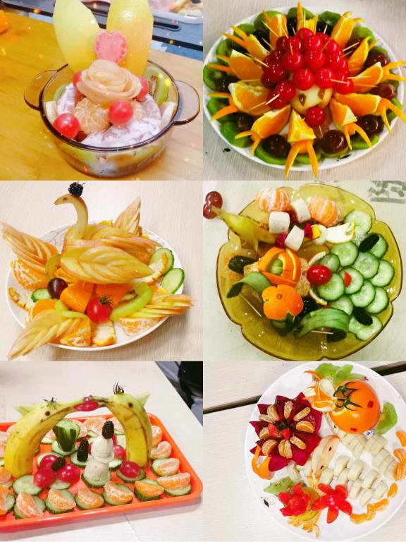 在八角厅举办以“欢声笑语‘拼’多多”为主题的水果拼盘创意设计大赛,报名参赛的110余名学生分成了28支队伍进行比拼。