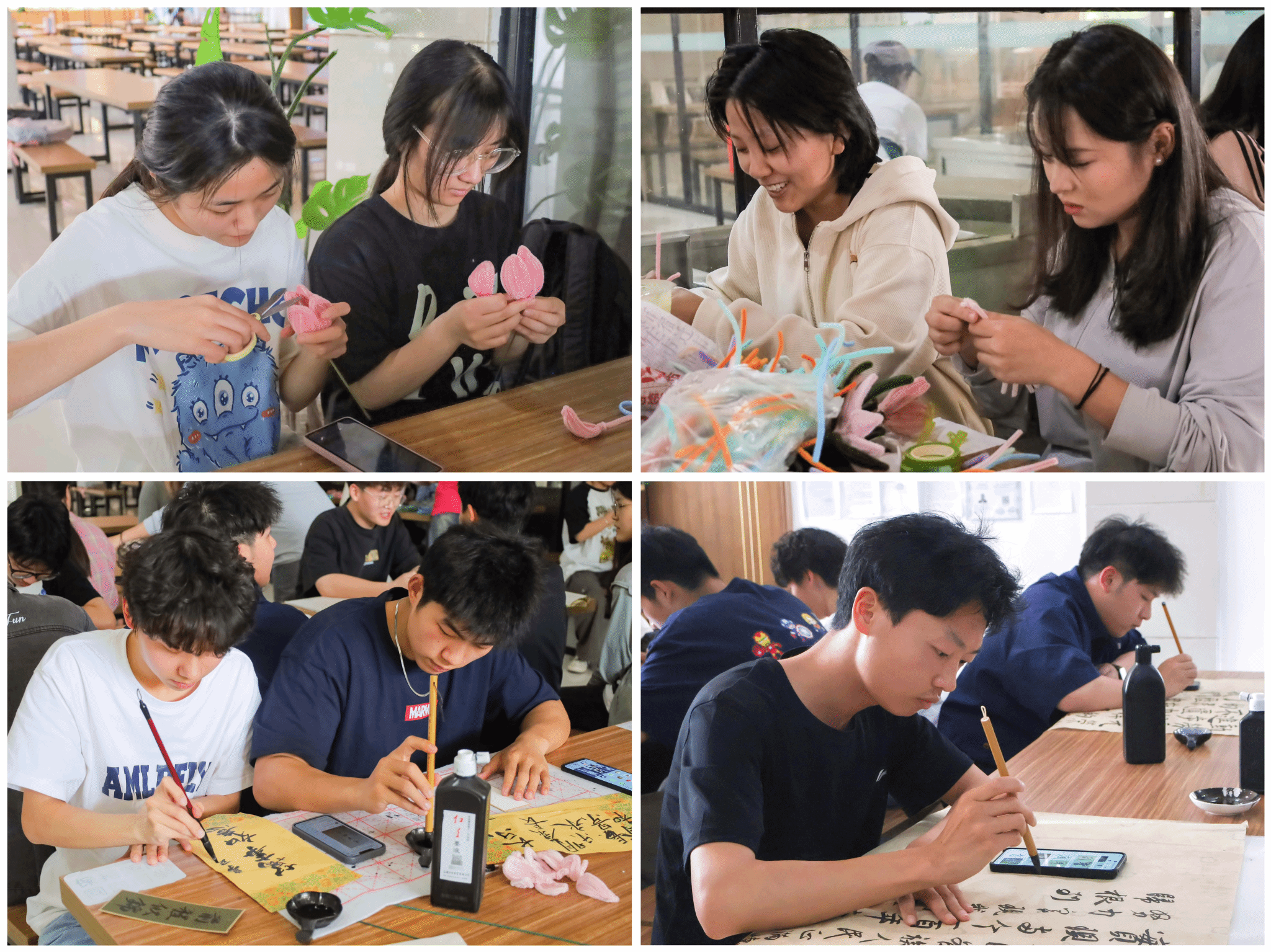 70余名学子带着笔墨宣纸和扭扭棒来到食堂二楼的休息区,计划着为食堂的劳动者们献上一份劳动节惊喜。