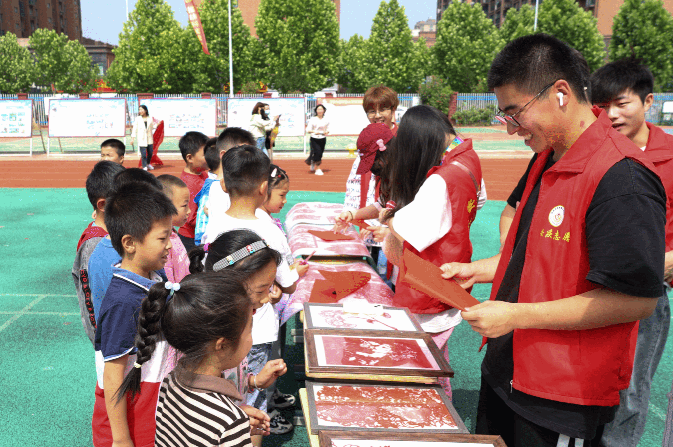 前往朝阳路小学举办科普活动艺术展,近100件缠花与剪纸作品“全新亮相”,带领200余名小学生“沉浸式”领略非遗魅力。