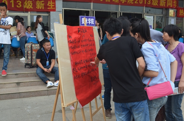 2013级230名新生,使新生体会到学院的关怀与温暖,为期三天的迎新工作于9月13日下午圆满落下了帷幕。