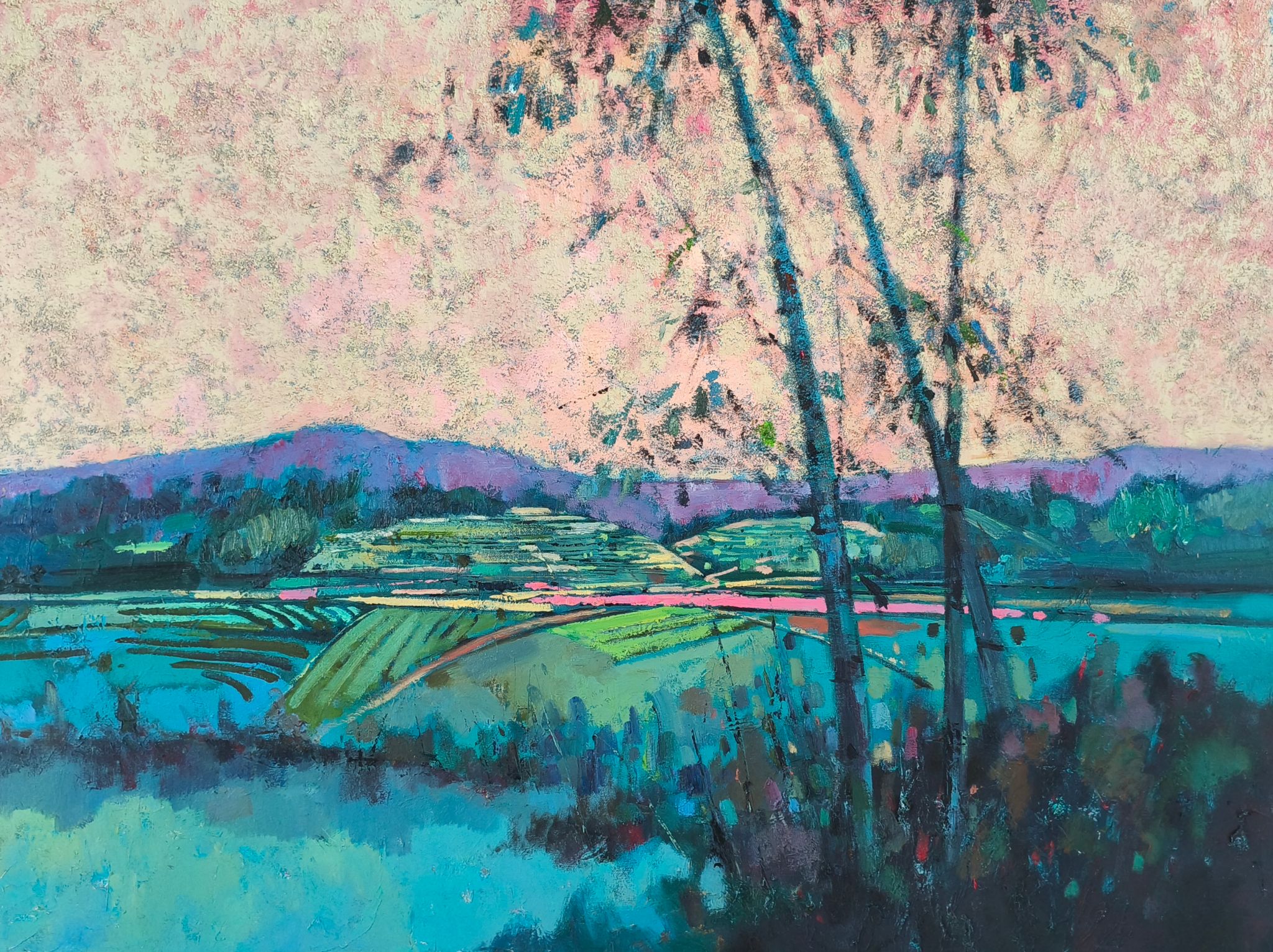 高俊松:塔畈春茶 油画