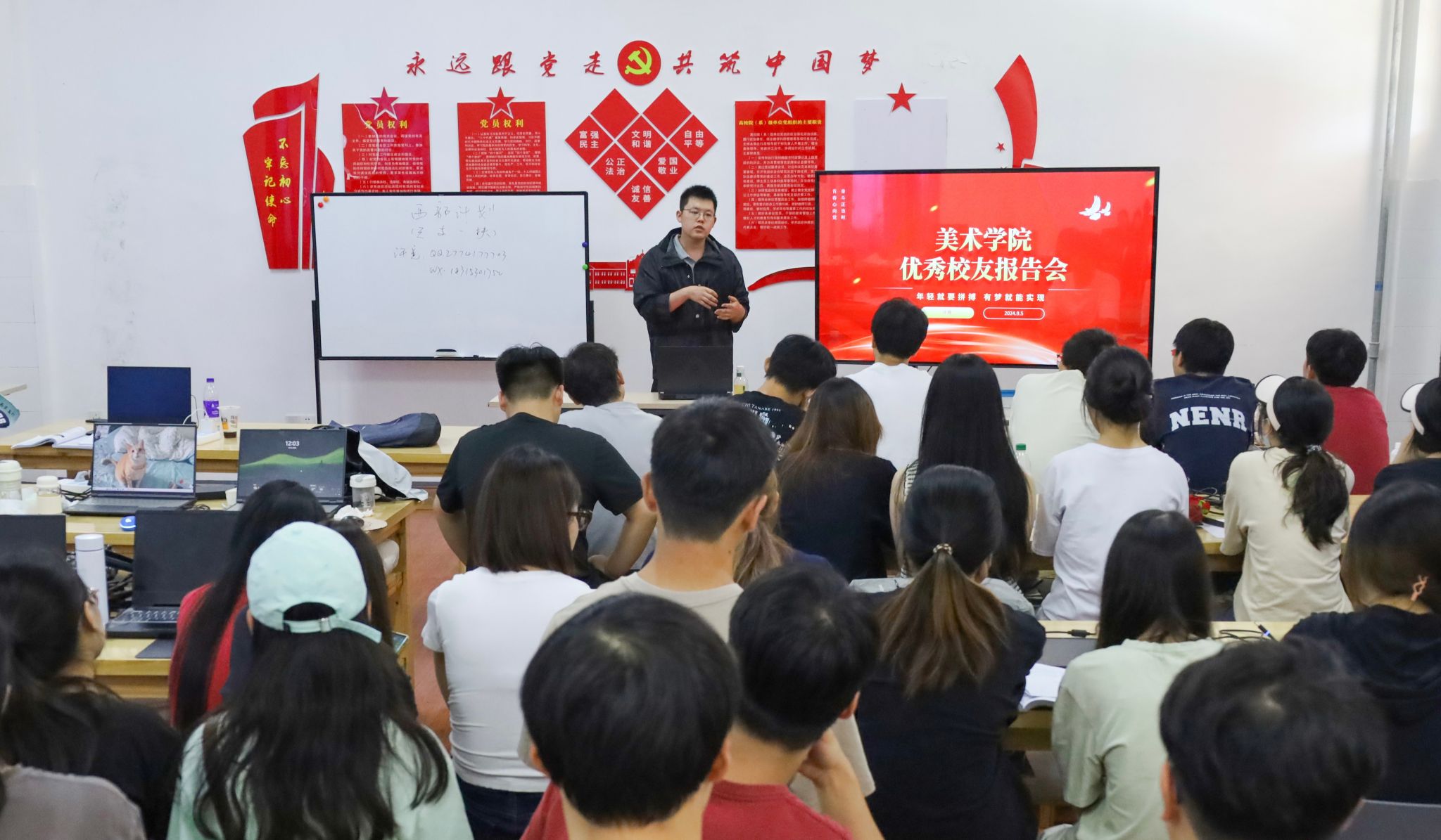 举办校友报告会,邀请学院2022年西部计划志愿者、2022年校“十佳青年”、2022届美术学专业优秀毕业生许竟回校交流座谈,分享参与“西部计划”的相关经验。美术学院2021级50余名学生代表到场聆听。